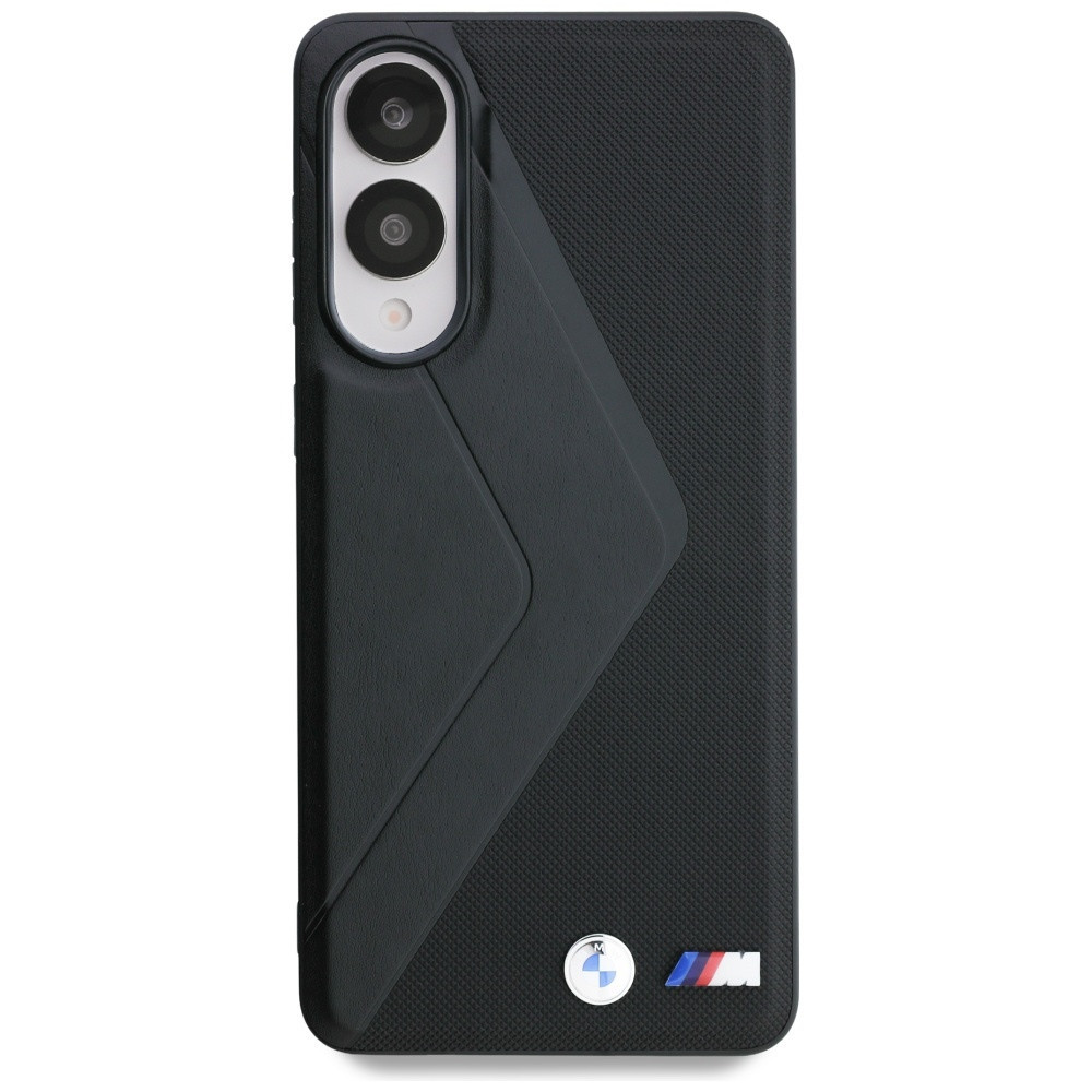 BMW Leather Oversized Stripes Samsung Galaxy S25 Edge bőr MagSafe hátlap tok, fekete