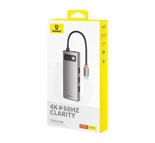 Baseus Gleam 7 az 1-ben Hub, USB-C 1x HDMI4K 60Hz + 3x USB3.0 + 1x PD + 1x SD/TF (szürke)
