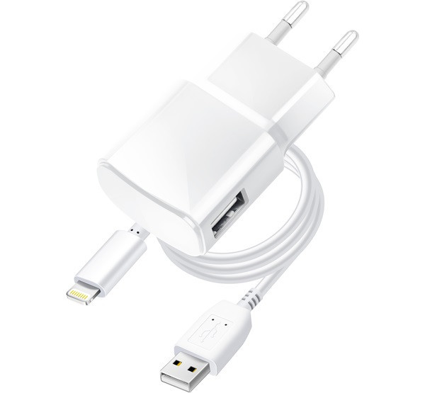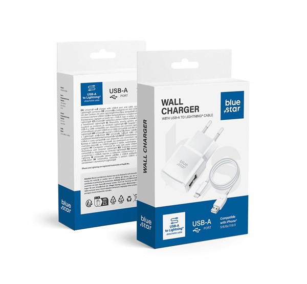 Blue Star hálózati töltő adapter USB-A + Lightning kábel, 1A, 5W, fehér