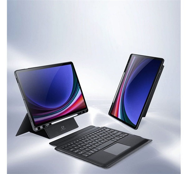 Dux Ducis DK Samsung Tab S10 Plus/S9 Plus/S9 FE Plus kihajtható tok vezeték nélküli billentyűzettel, háttérvilágítással, fekete