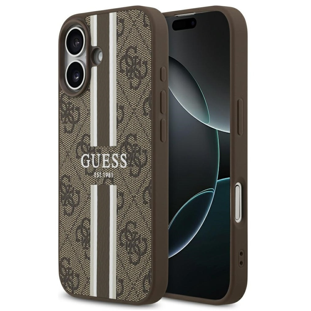 Guess 4G Printed Stripes Apple iPhone 17 MagSafe hátlap tok, barna