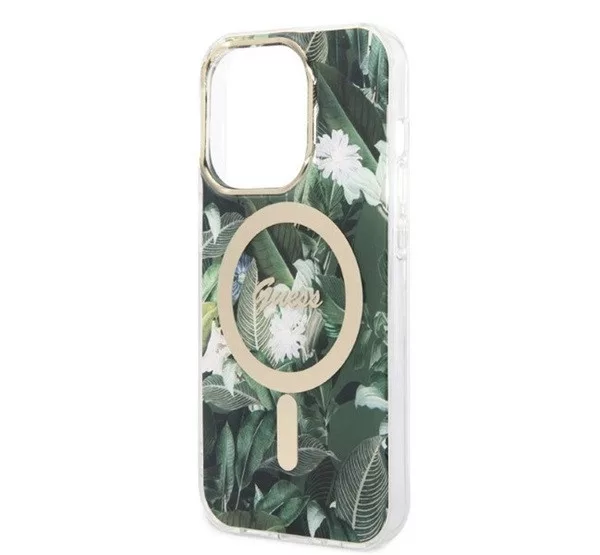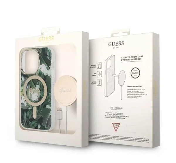 Guess Jungle MagSafe Apple iPhone 14 Pro Max hátlap tok, zöld + MagSafe töltő