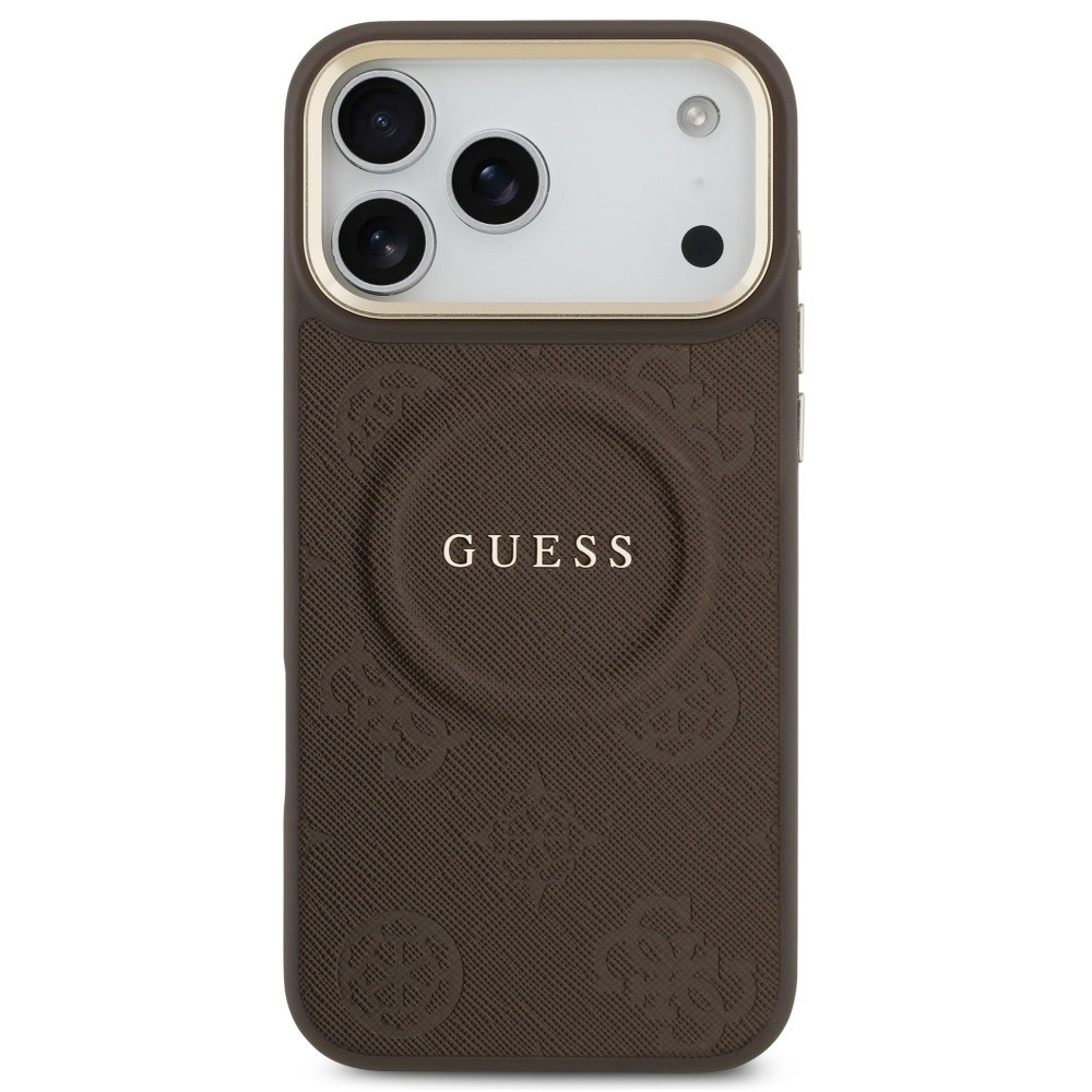 Guess Peony Hot Stamp Apple iPhone 17 Pro MagSafe tok kameravédő peremmel, barna-arany