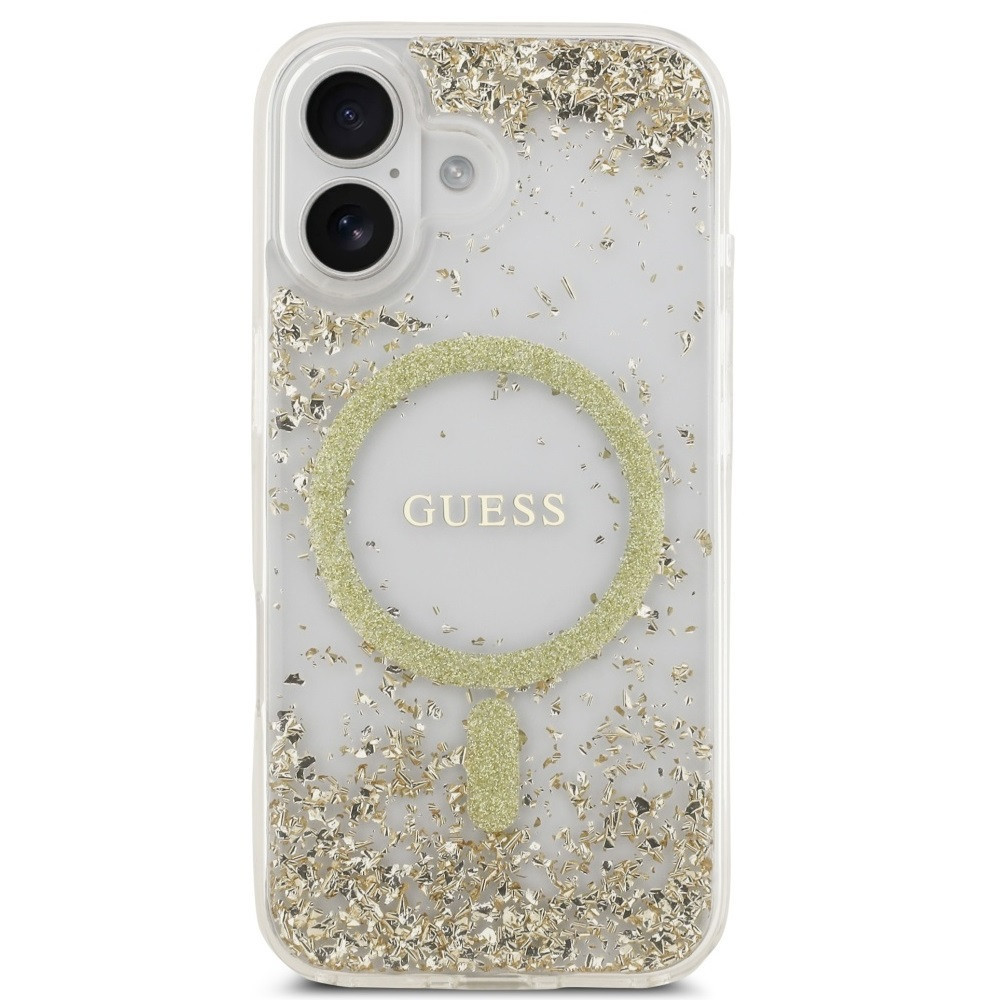 Guess Resin Bottom Glitter Apple iPhone 17 MagSafe tok, csillámos, átlátszó-arany