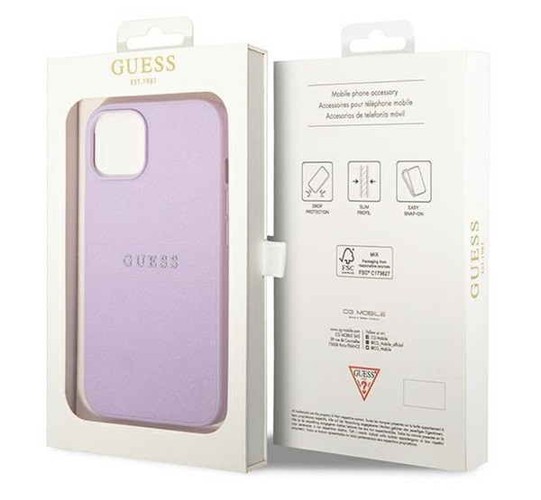 Guess Saffiano Strap Apple iPhone 14 Plus hátlap tok, lila