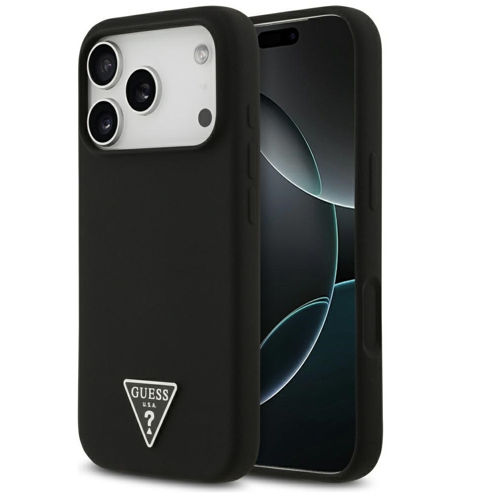 Guess Silicone Triangle Logo Apple iPhone 17 Pro MagSafe hátlap tok, fekete