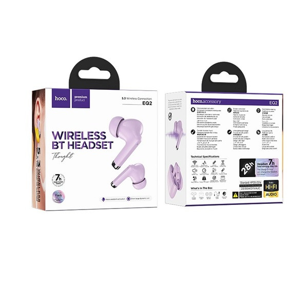 Hoco EQ2 TWS Thought True bluetooth headset, lila