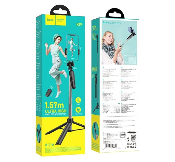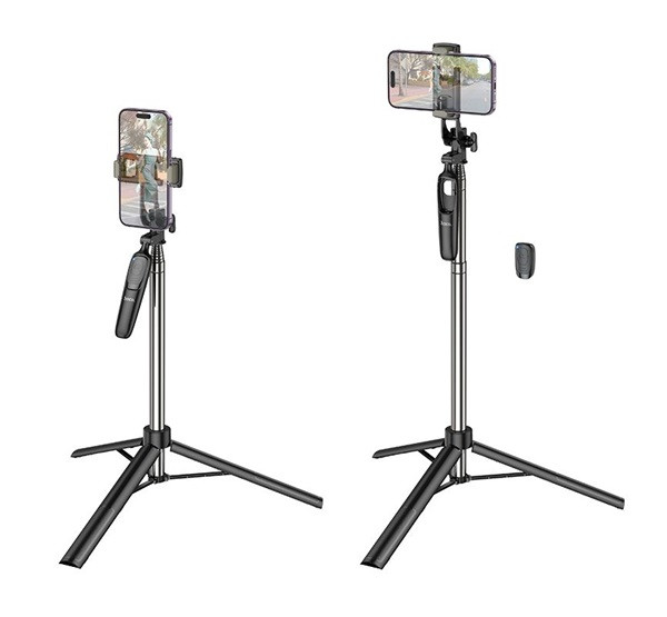 Hoco K19 Soul extra hosszú selfie bot, kinyitható lábakkal, távirányítóval, fekete