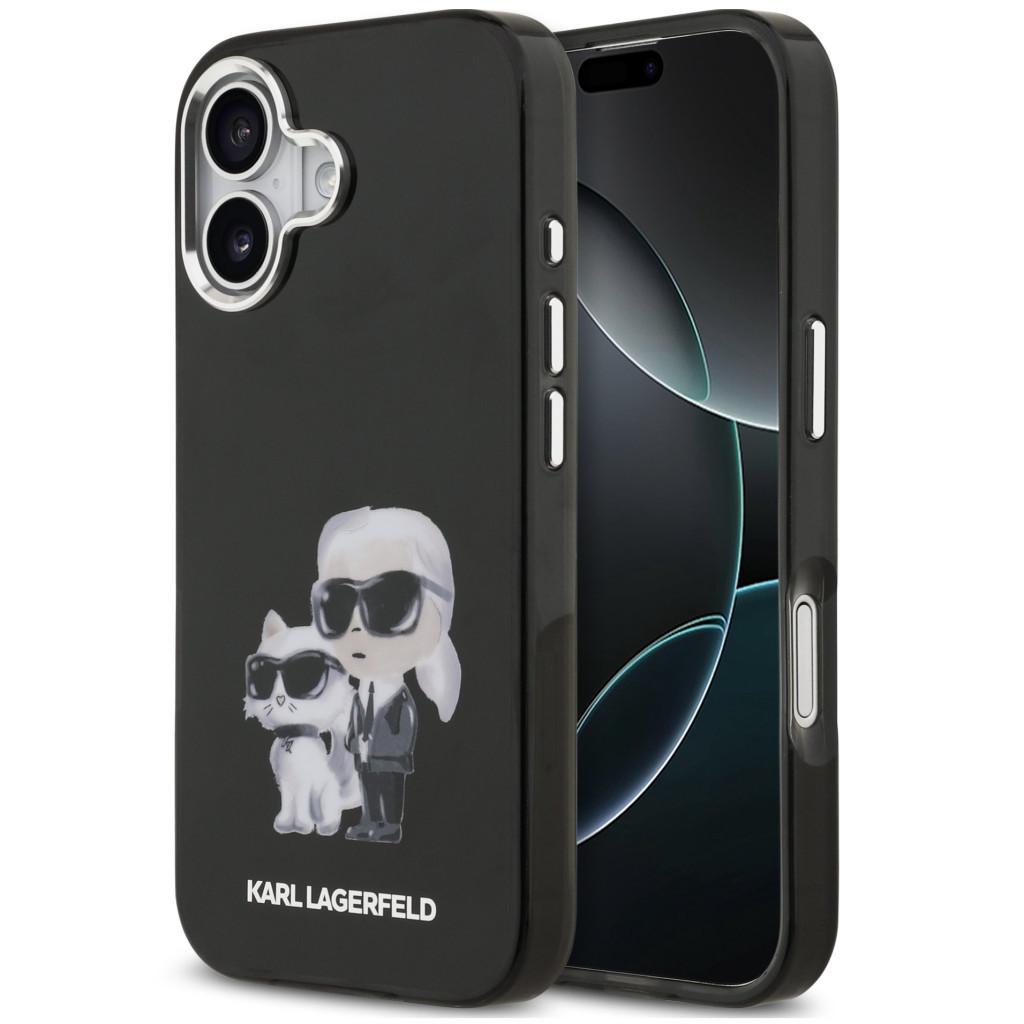 Karl Lagerfeld IML Aquarelle Karl and Choupette Apple iPhone 17 hátlap tok, fekete