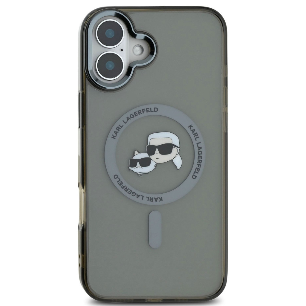 Karl Lagerfeld IML K&CH Heads Metal Frame iPhone 16 MagSafe tok kameravédő peremmel, fekete