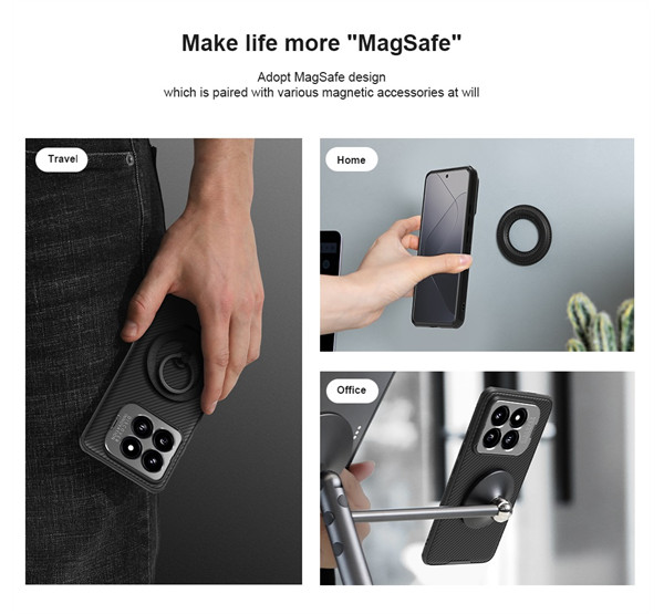Nillkin CamShield Prop Xiaomi 14 mágneses tok kitámasztható kameravédő peremmel, fekete