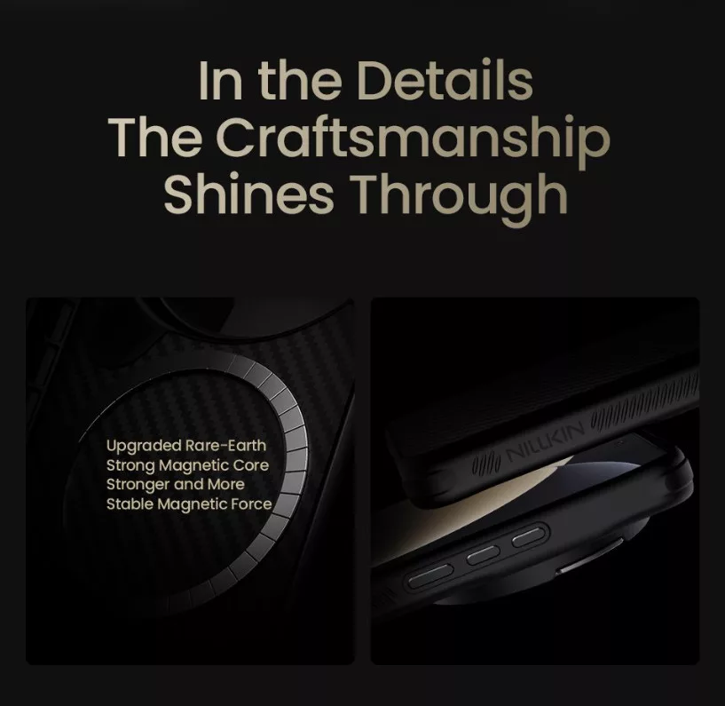 A Nillkin CarboProp aramid hátlap aramid szálból készült, amelyet az anyagiparban általánosan „fekete aranynak” neveznek. Az aramid szálak és a TPU átfogó védelmet nyújtanak telefonjának.