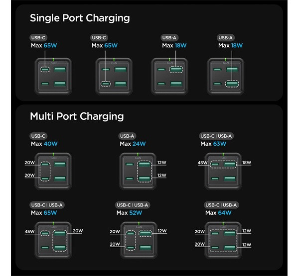 A Spigen ArcDock 65W-os töltő kompakt mérete ellenére rendkívüli teljesítményt nyújt, köszönhetően a fejlett 3D PCB technológiának. 19%-kal kisebb, mint a szokásos 65W-os töltők, mégis elegendő energiát biztosít például egy 13 hüvelykes MacBook Pro 50%-os feltöltéséhez mindössze 43 perc alatt. Kis méretű, de nagy teljesítményű megoldás a gyors és hatékony töltéshez.