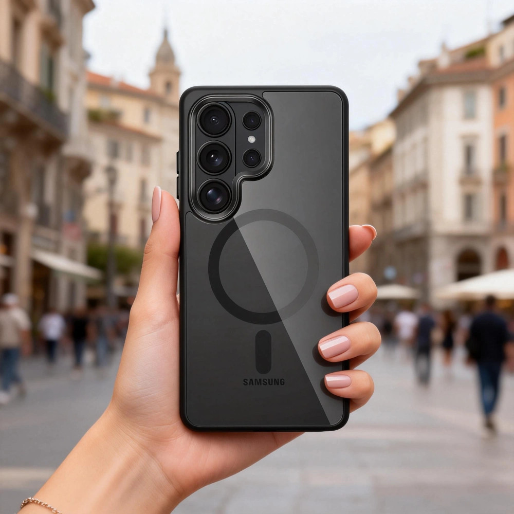 Tech-Protect Magmat Samsung Galaxy S26 Ultra hátlap tok, MagSafe, átlátszó-fekete