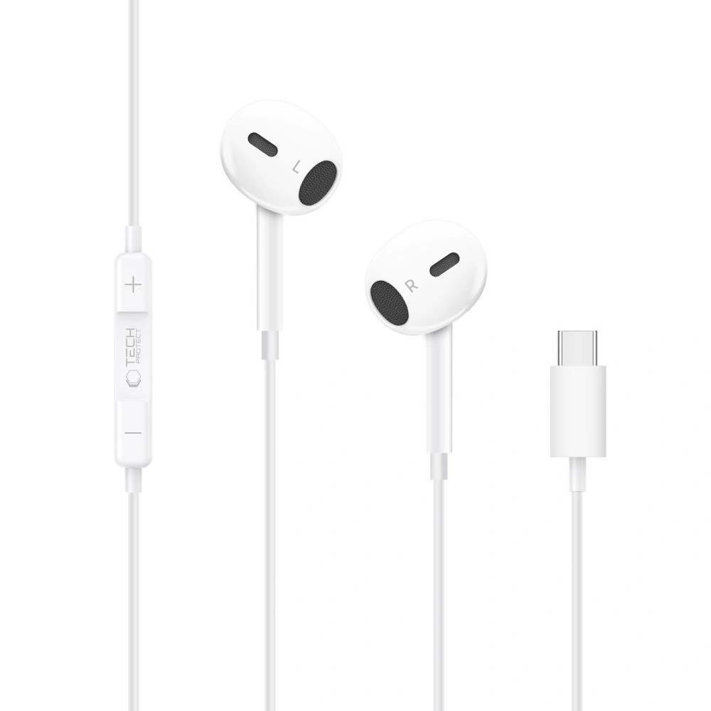 Tech-Protect UltraBoost USB-C vezetékes fülhallgató hangerőszabályzóval, mikrofonnal, fehér