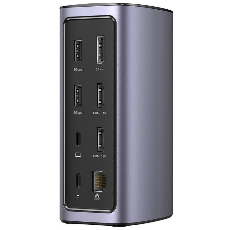 A UGREEN dokkoló állomás biztosan megfelel a mindennapi munka igényeinek. Akár 12 portot kínál, köztük HDMI, USB, Rj45 és SD/TF kártyahelyet. Mi több, lehetővé teszi a képek megjelenítését 3 különböző monitoron a további kényelem érdekében. Magas képminőséget, gyors adatátvitelt és azonnali készüléktöltést biztosít. Ezenkívül kompatibilis a macOS és a Windows operációs rendszerekkel. A csomagban egy 100 W-os USB-C kábelt is talál.