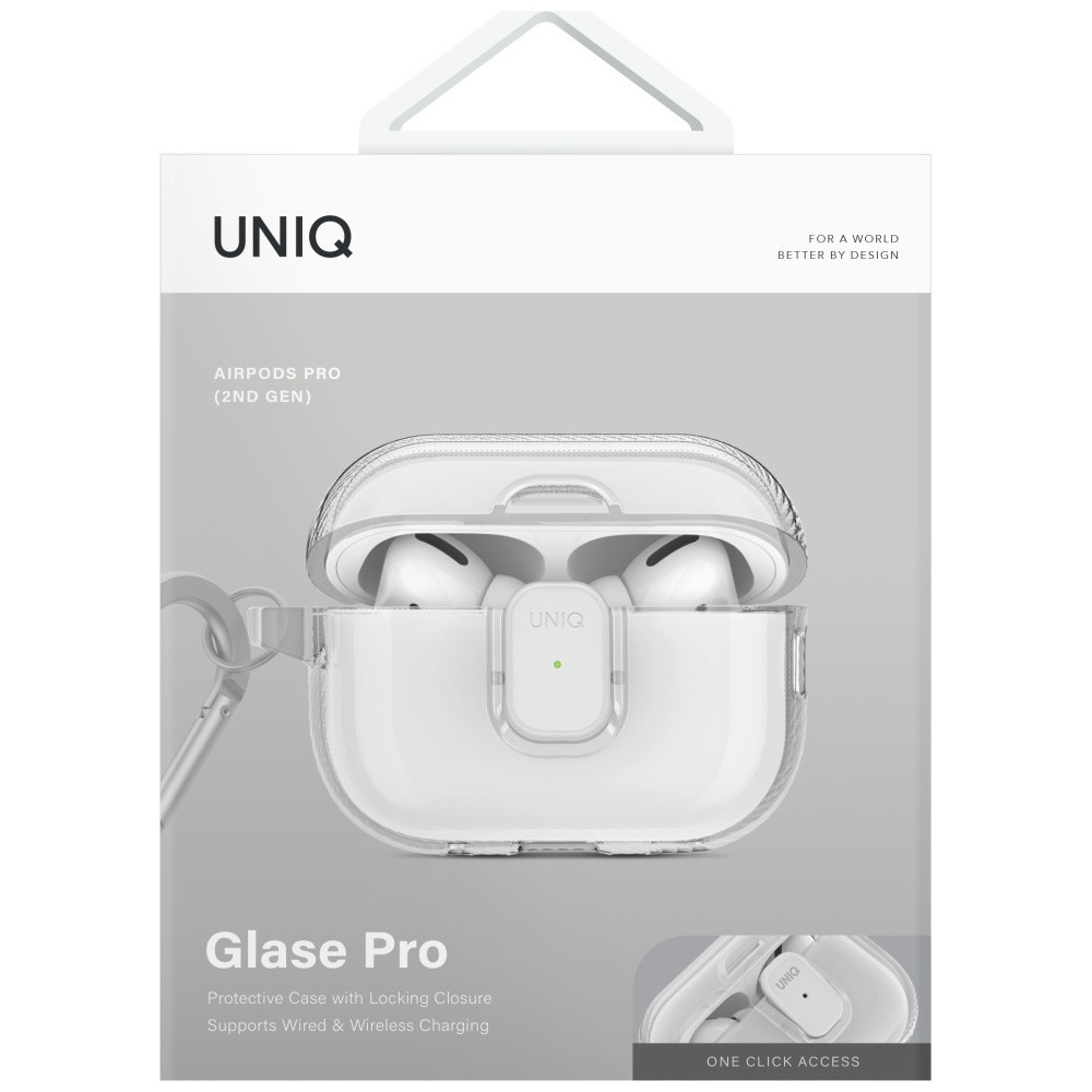 Uniq Glase Pro Apple AirPods Pro 2 tok karabinerrel, átlátszó