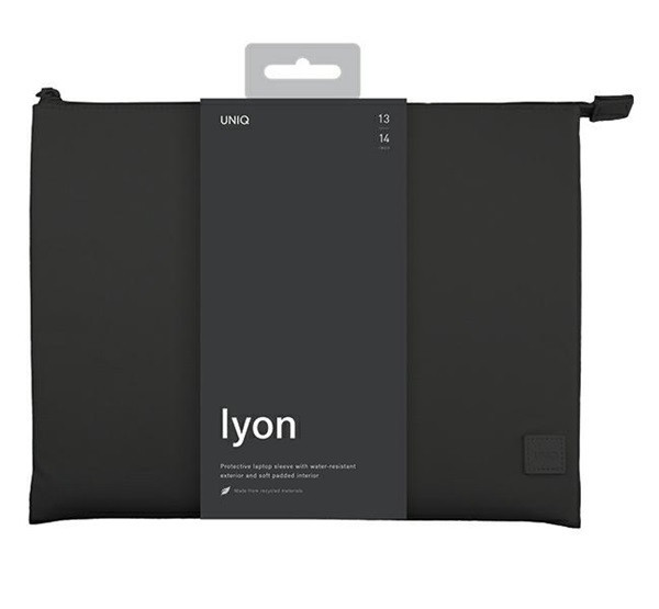 A Uniq Lyon egy modern, környezetbarát laptop sleeve, amely form-fitting védelmet nyújt a laptop számára. Külső rétege újrahasznosított anyagokból készült, vízálló, és védelmet nyújt az eső és fröccsenés ellen. Puha belső béléssel és belső párnázott rétegekkel rendelkezik, hogy elnyelje az ütéseket.