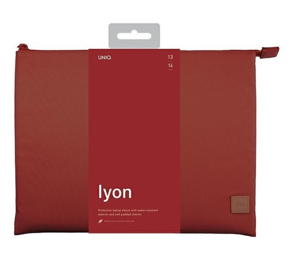 A Uniq Lyon egy modern, környezetbarát laptop sleeve, amely form-fitting védelmet nyújt a laptop számára. Külső rétege újrahasznosított anyagokból készült, vízálló, és védelmet nyújt az eső és fröccsenés ellen. Puha belső béléssel és belső párnázott rétegekkel rendelkezik, hogy elnyelje az ütéseket.