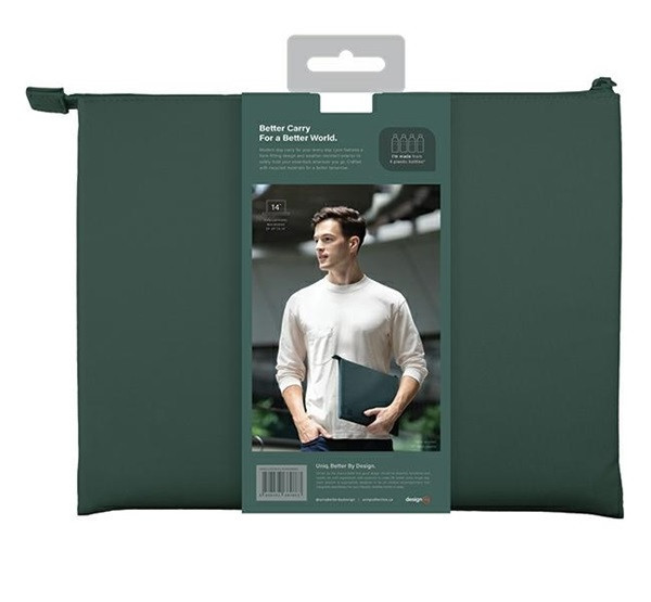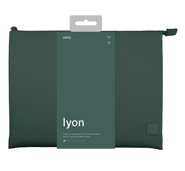 A Uniq Lyon egy modern, környezetbarát laptop sleeve, amely form-fitting védelmet nyújt a laptop számára. Külső rétege újrahasznosított anyagokból készült, vízálló, és védelmet nyújt az eső és fröccsenés ellen. Puha belső béléssel és belső párnázott rétegekkel rendelkezik, hogy elnyelje az ütéseket.