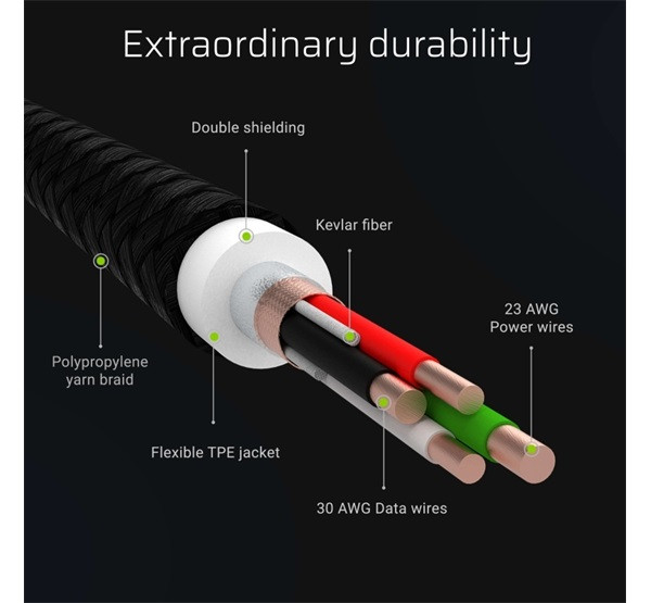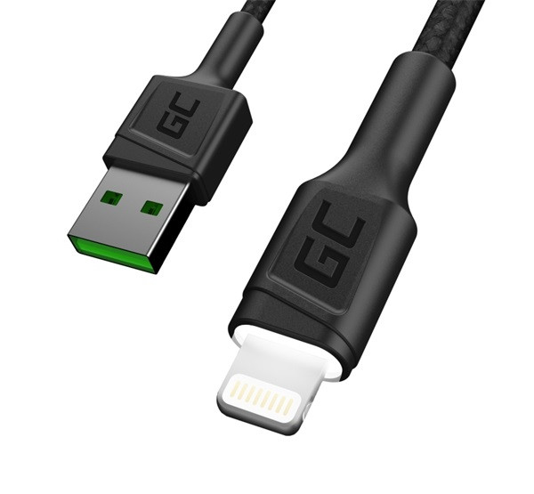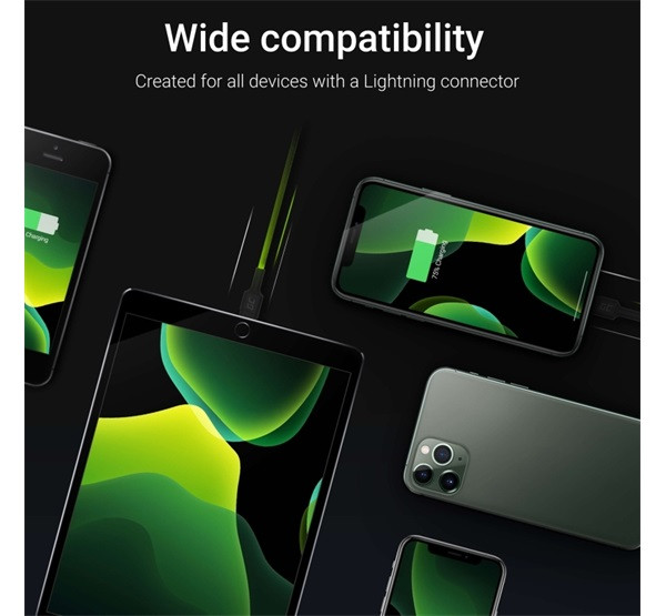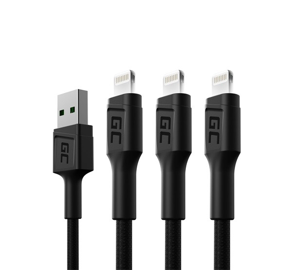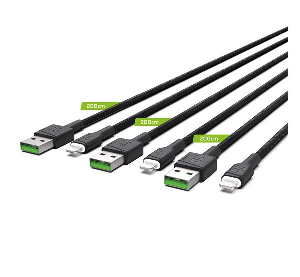 Green Cell Ray Apple iPhone lightning kábel szett, 2m, fehér LED világítással, fekete (3db)