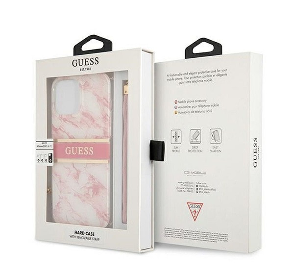 Guess TPU Marble Stripe Apple iPhone 13 Pro hátlap tok, rózsaszín