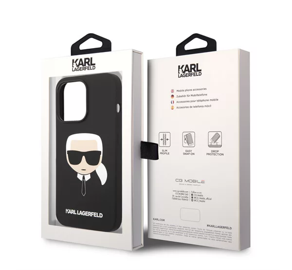 Karl Lagerfeld Head Liquid szilikon hátlap tok Apple iPhone 14 Pro Max, fekete