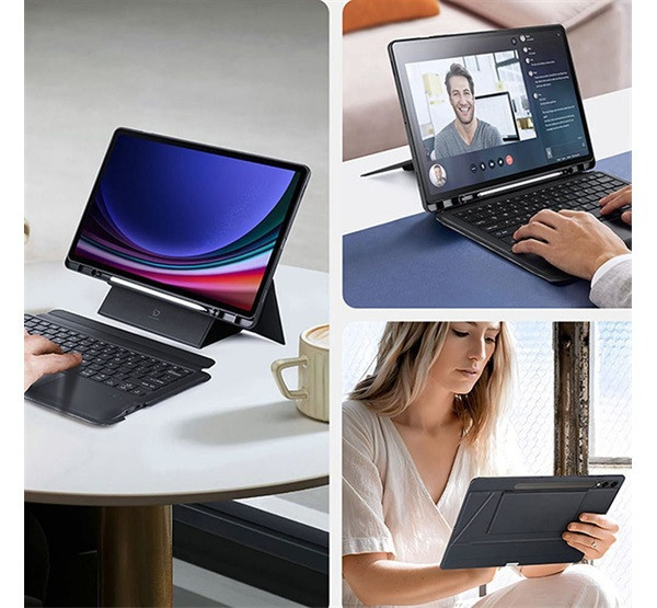 Dux Ducis DK Samsung Tab S10 Plus/S9 Plus/S9 FE Plus kihajtható tok vezeték nélküli billentyűzettel, fekete