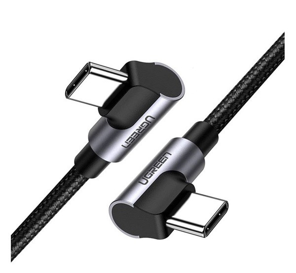 Ugreen US323 Type-C - Type-C gyorstöltő derékszögű adatkábel, 60W, 2m, fekete