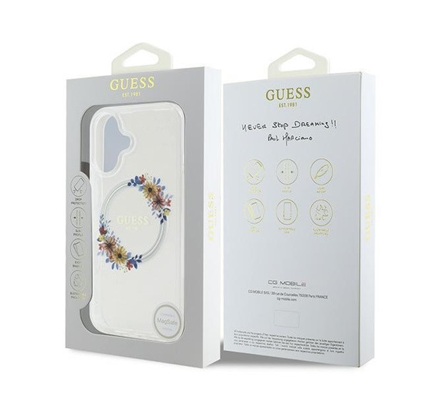 A legmagasabb minőségű anyag rendkívül ellenálló a sérülésekkel és karcolásokkal szemben, így hosszú ideig megőrzi kifogástalan megjelenését. A tok hátoldalán középen elhelyezett nagyméretű Guess-logó kiemeli a kollekció exkluzivitását, gyönyörű díszítésként szolgál, és egyben megerősíti a tok kiváló minőségét és eredetiségét.