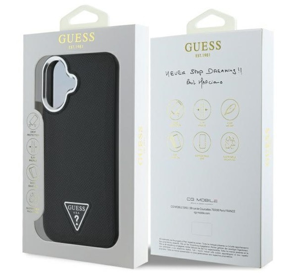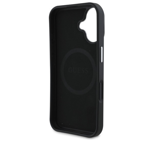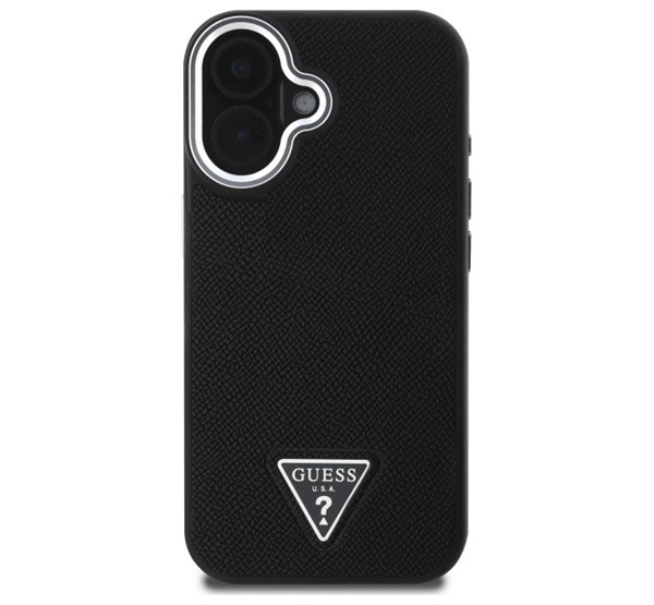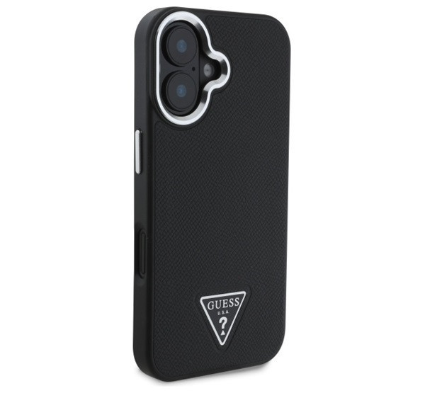 Guess Grained Triangle iPhone 16 MagSafe kemény hátlap tok, fekete GUHMP16SPGTSPSK