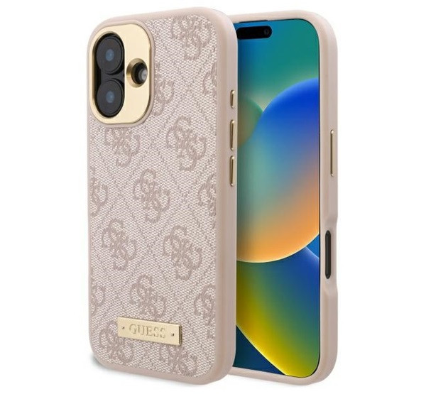 Guess 4G Logo Plate iPhone 16 MagSafe kemény hátlap tok, rózsaszín GUHMP16SU4GPRB