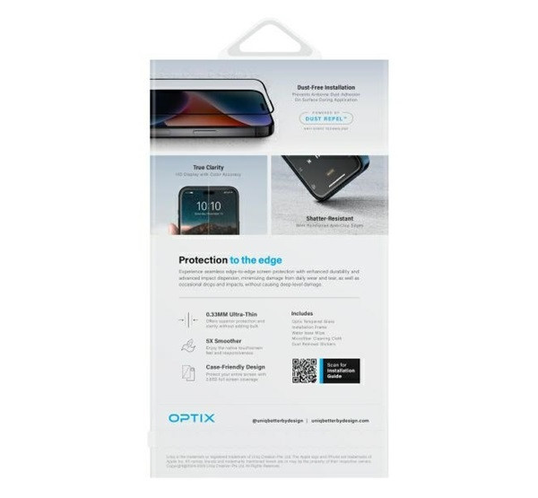 Uniq Optix Vivid Clear iPhone 16 Plus tempered glass kijelzővédő fólia, átlátszó