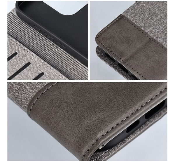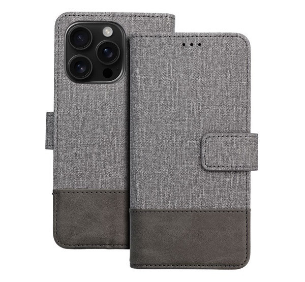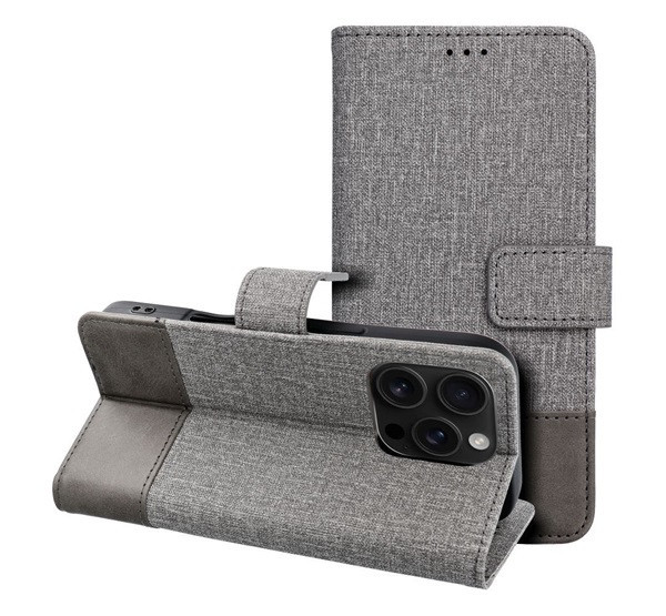 Gomma Samung Galaxy A15 4G / A15 5G flip/oldalra nyíló tok kártyatartó résszel, szürke