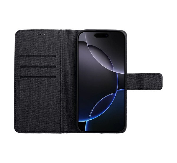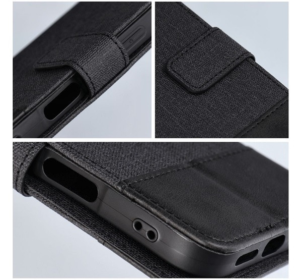 Gomma Samung Galaxy A55 5G flip/oldalra nyíló tok kártyatartó résszel, fekete
