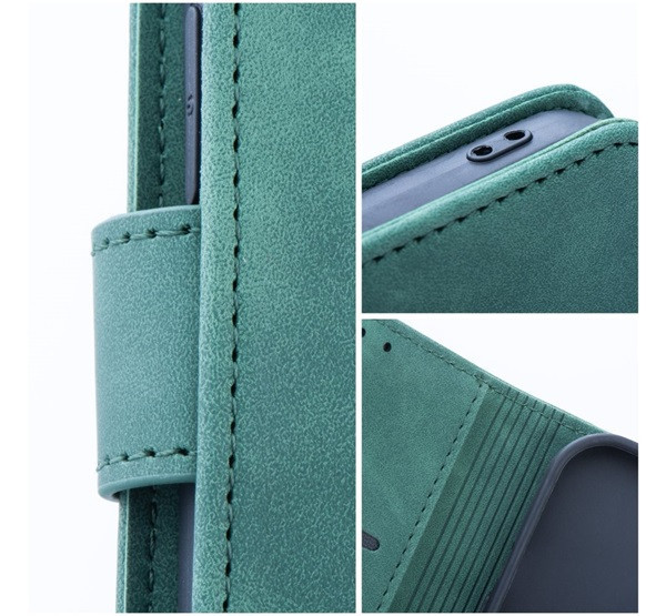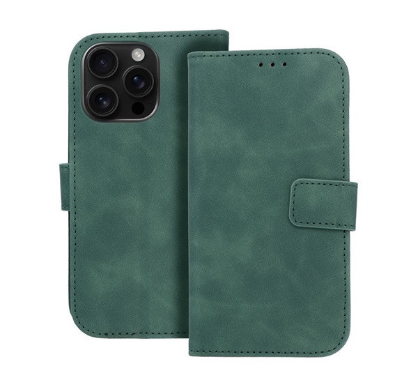Tender Book iPhone 16 Pro flip/oldalra nyíló műbőr tok kártyatartó résszel, zöld