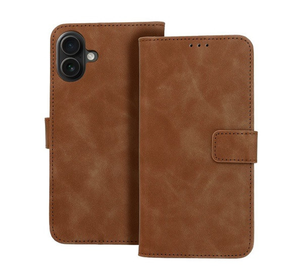 Tender Book iPhone 16 Plus flip/oldalra nyíló műbőr tok kártyatartó résszel, barna