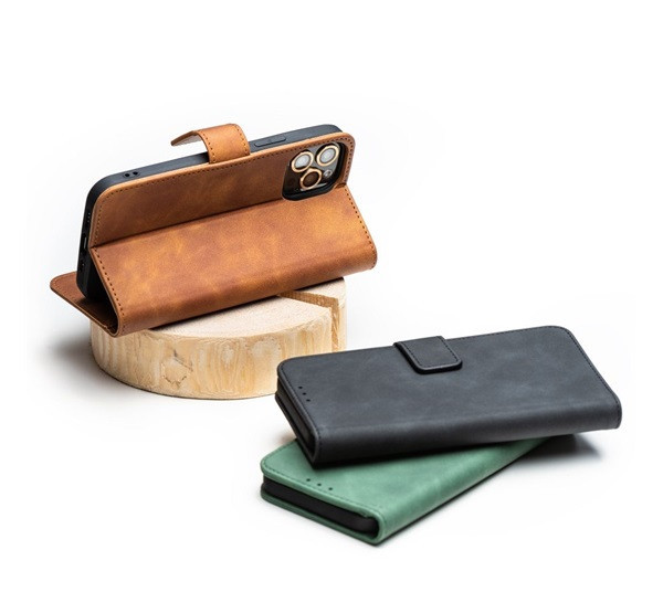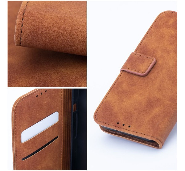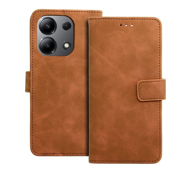 Tender Book Xiaomi Redmi Note 13 4G flip/oldalra nyíló műbőr tok kártyatartó résszel, barna