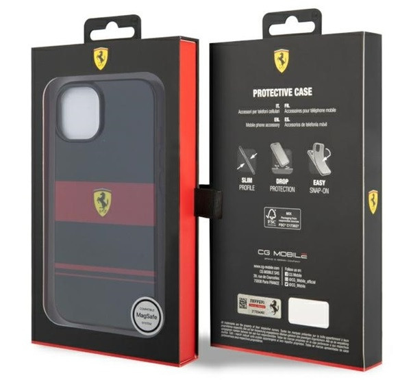 A tokokat vízszintes csíkok díszítik, amelyek vizuálisan könnyedebbé teszik őket, ugyanakkor sportos jelleget kölcsönöznek a telefonnak. A márka világszerte ismert logója a kollekció csúcspontja, amely elegáns és elegáns megjelenést kölcsönöz a terméknek. A Combi MagSafe kollekció egyedülálló ajánlat a Ferrari-rajongók számára, és csúcskategóriás megjelenést biztosít.