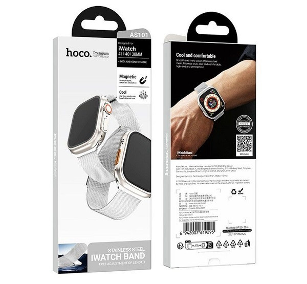 Hoco AS101 Apple Watch 38 / 40 / 41mm mágneses fémszíj, ezüst