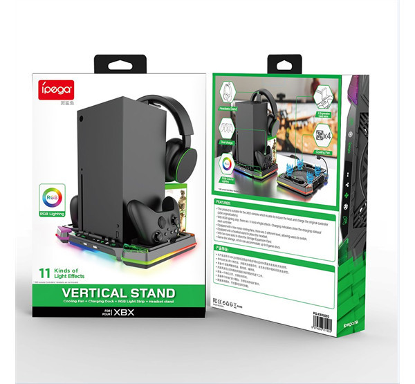 iPega XBX025S Xboxhoz tervezett multifunkcionális töltőállvány. Praktikus állvány beépített ventilátorokkal a konzolod számára a legjobb hűtésért a hosszú órákon át tartó játék során.