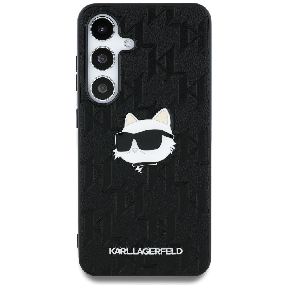Karl Lagerfeld Leather Monogram Pin Logo Choupette Head Samsung Galaxy S25 kemény hátlap tok, fekete