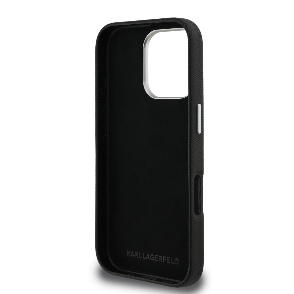 Karl Lagerfeld Grained PU K&CH Heads iPhone 16 Pro hátlap tok, fekete