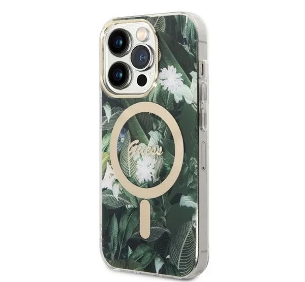 Guess Jungle MagSafe Apple iPhone 14 Pro hátlap tok, zöld + MagSafe töltő