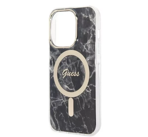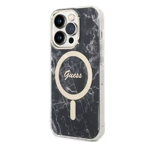 Guess Marble MagSafe Apple iPhone 14 Pro Max hátlap tok, fekete + MagSafe töltő