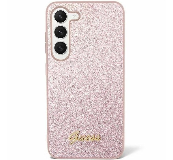 Guess Glitter Script 4G Samsung Galaxy S24+ hátlap tok, rózsaszín