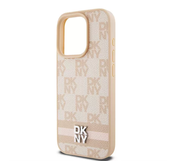 DKNY PU Leather Checkered Pattern and Stripe iPhone 14 Pro Max hátlap tok, rózsaszín