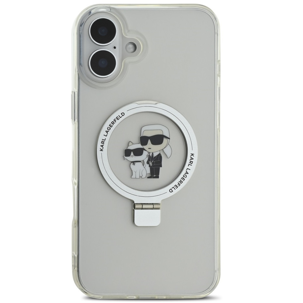 Karl Lagerfeld Ringstand Karl and Choupette iPhone 16 MagSafe tok kitámasztóval, fehér