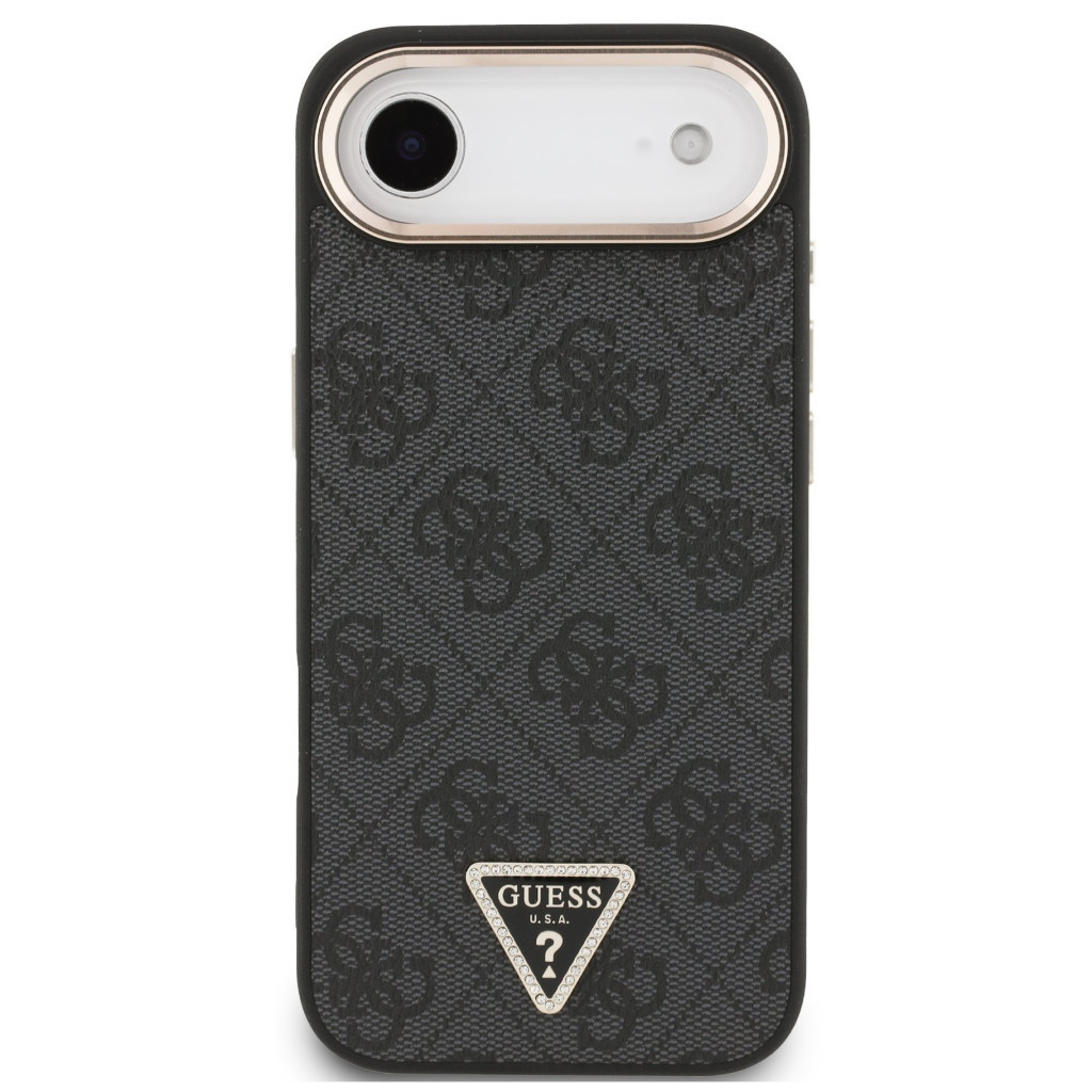 Guess PU Leather 4G Triangle Logo Gold Frame Apple iPhone Air (2025) MagSafe hátlap tok, fekete