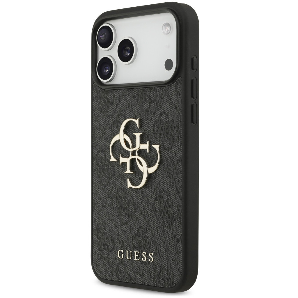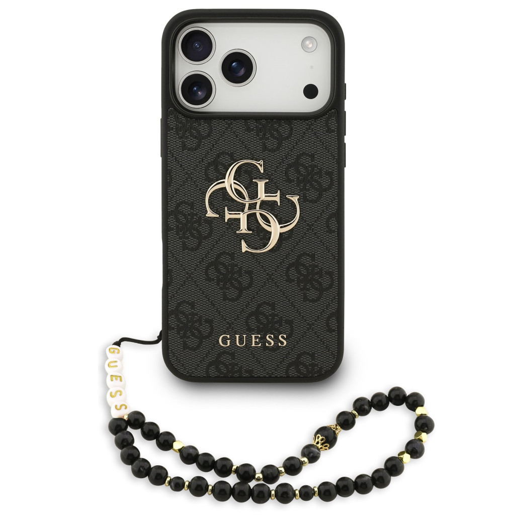 Guess PU 4G Metal Logo Strap Apple iPhone 17 Pro hátlap tok karpánttal, fekete